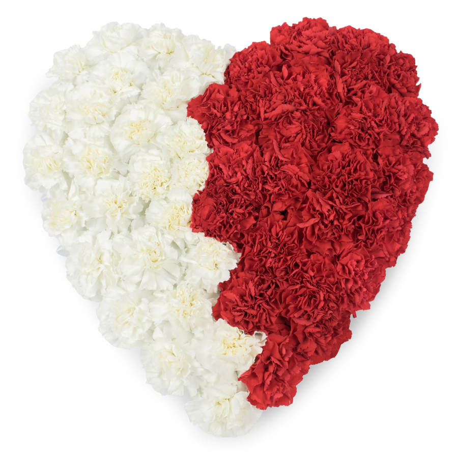 Express your deepest emotions with our Beautiful Mixed Carnations Heart Design. This stunning bouquet features a perfect blend of white and red carnations, each meticulously hand-selected to ensure freshness and vibrant beauty.